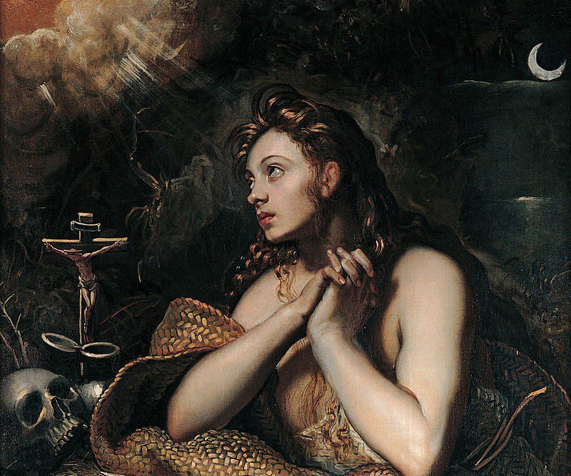 Δεν υπάρχει καμία ένδειξη πουθενά στα Ευαγγέλια ότι η Μαρία Μαγδαληνή έζησε αμαρτωλή ή άσωτη ζωή, αλλά κατά τον τρίτο αιώνα είχε εξομοιωθεί πλήρως με την ανώνυμη γυναίκα του Λουκά, «αμαρτωλή», η οποία λούζει τα πόδια του Ιησού με τα δάκρυά της και τα στεγνώνει με τα μαλλιά της (Λουκάς 7:38).
