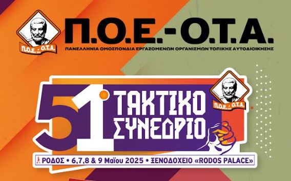 Με αφορμή τις εργασίες του 51ου Τακτικού Συνεδρίου της Π.Ο.Ε.-Ο.Τ.Α. που ξεκινούν αύριο, Τρίτη 6 Μαΐου 2025, στο Ξενοδοχείο «RODOS PALACE», στη Ρόδο και θα διαρκέσουν έως την Παρασκευή 9 Μαΐου 2025, η Εκτελεστική Επιτροπή της Ομοσπονδίας παραχώρησε σήμερα Συνέντευξη Τύπου (12:00 το μεσημέρι) κάνοντας τον Απολογισμό Δράσης της 3ετίας που πέρασε με δυναμικές, μαζικές και ενωτικές κινητοποιήσεις, παρεμβάσεις και αγώνες, κόντρα στην ακραία νεοφιλελεύθερη πολιτική που εφαρμόζει η κυβέρνηση.