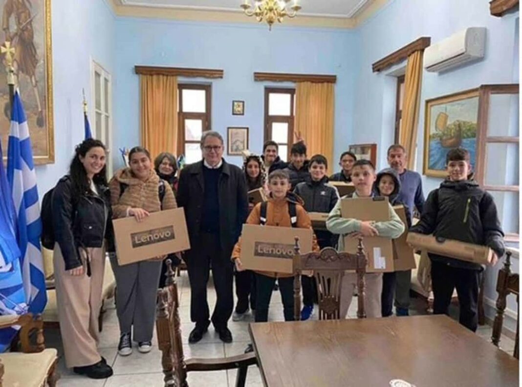 Ο Δήμαρχος, παραδίδοντας προσωπικά τα laptops, ευχήθηκε στους μαθητές καλή σχολική χρονιά και προέτρεψε στη σωστή αξιοποίησή τους για τις μαθησιακές τους ανάγκες.