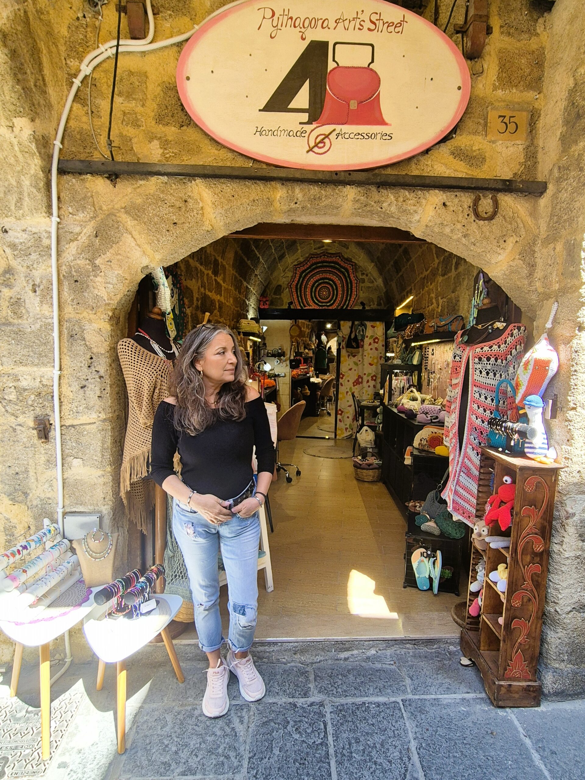 Λίγα δρομάκια πιο πέρα, στις κομψές δημιουργίες της Αγνής η τέχνη του χειροποίητου υπηρετεί την ένδυση και την προσωπική έκφραση. Η ιστορία της έχει αρκετά κοινά στοιχεία με της Λένας. Γέννημα – θρέμμα Θεσσαλονίκης, βρέθηκε κι εκείνη στη Ρόδο χωρίς να έχει κάποια προηγούμενη σχέση με το νησί, ως ερωτική μετανάστρια. Θεωρεί όμως ότι επρόκειτο για μια «καρμική σύμπτωση», καθώς όσο βρίσκονταν στην προηγούμενη απασχόλησή της είδε τυχαία ότι νοικιάζονταν το συγκεκριμένο κατάστημα και το έκλεισε το ίδιο κιόλας απόγευμα. Ο ενθουσιασμός της ήταν τέτοιος που άνοιξε την επόμενη κιόλας μέρα, χωρίς καν εμπόρευμα, περνώντας μερόνυχτα πλέκοντας – μια ενασχόληση αγαπημένη από τα 17 της χρόνια. Μόλις πουλούσε ένα έργο που ολοκλήρωνε, επένδυε σε νήματα και καταπιάνονταν με το επόμενο, δουλεύοντας ασταμάτητα.