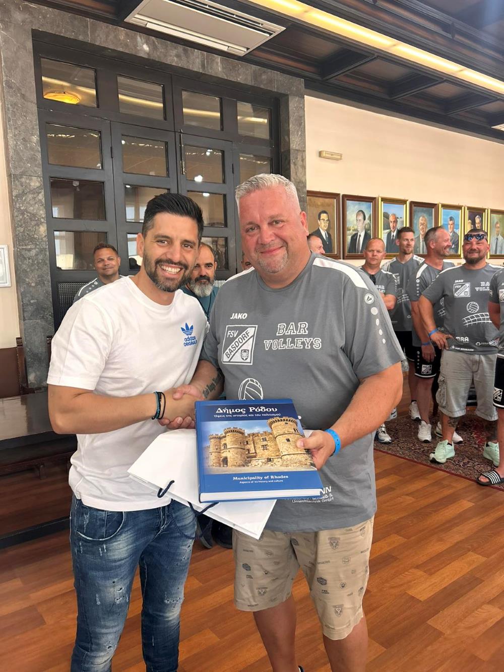 Ο Εντεταλμένος Σύμβουλος Αθλητισμού Δήμου Ρόδου Μιχάλης Πλύγκος και ο Αντιδήμαρχος Επικοινωνίας Γιώργος Πάττας, υποδέχθηκαν στο Δημαρχιακό Μέγαρο μέλη του Συλλόγου «ΣΤΗΡΙΞΗ Άγιος Ανδρέας», τους βετεράνου παίκτες της Γερμανίας και της μικτής ομάδας Ρόδου, την Πρόεδρο των Προνοιακών Ιδρυμάτων Ρόδου Μαρία Κορακάκη, από την Τοπική Επιτροπή Πετοσφαίρισης Δωδεκανήσου τον Πρόεδρο Στάθη Μαθιουδάκη και τον Γενικό Γραμματέα Μηνά Λεντή καθώς και τον καθηγητή του αθλήματος της πετοσφαίρισης Θανάσης Παπαγεωργίου