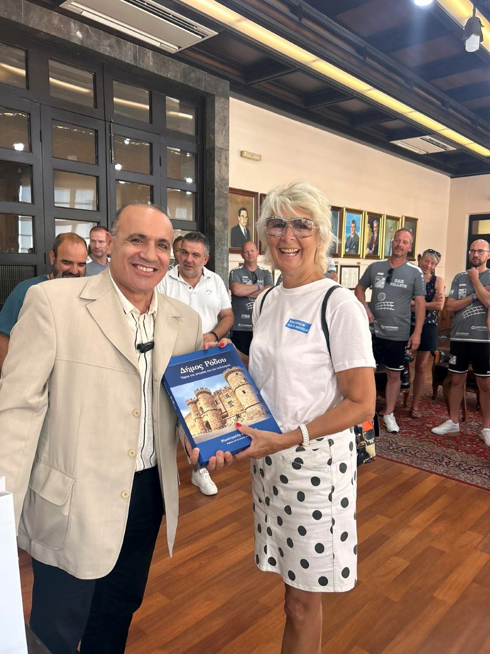 Μετά το καλωσόρισμα και τις ευχαριστίες πραγματοποιήθηκαν ανταλλαγές δώρων και ακολούθησε ξενάγηση στο Δημαρχιακό Μέγαρο Ρόδου από τον Αντιδήμαρχο Επικοινωνίας Γιώργο Πάττα.