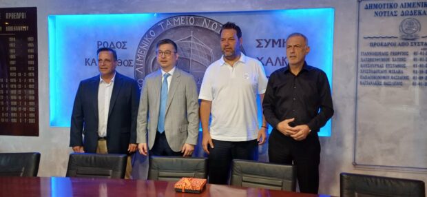 Εθιμοτυπική συνάντηση πραγματοποιήθηκε το πρωί της Δευτέρας στις εγκαταστάσεις του Λιμενικού Ταμείου Νότιας Δωδεκανήσου, με τη συμμετοχή του Διευθύνοντος Συμβούλου της COSCO και CEO του Οργανισμού Λιμένος Πειραιά (ΟΛΠ), κ. Su Xudong, συνοδευόμενου από στελέχη της διοίκησης του ΟΛΠ.