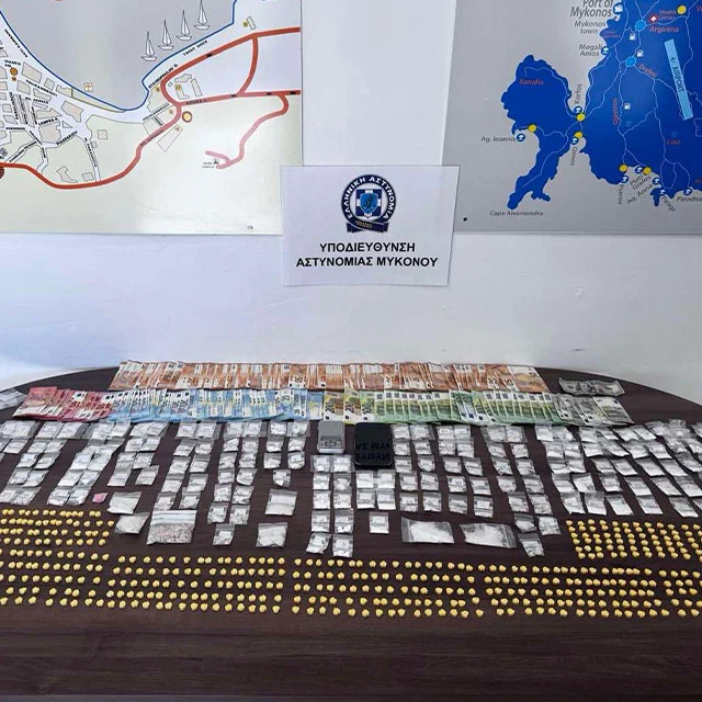 Με νέο καίριο πλήγμα στη μάστιγα των ναρκωτικών στη Μύκονο, η Ελληνική Αστυνομία αποκάλυψε ένα οργανωμένο κύκλωμα που τροφοδοτούσε την υψηλή πελατεία του νησιού με «λευκή σκόνη», κεταμίνη και συνθετικά χάπια, σε τιμές που θύμιζαν… χρηματιστήριο.