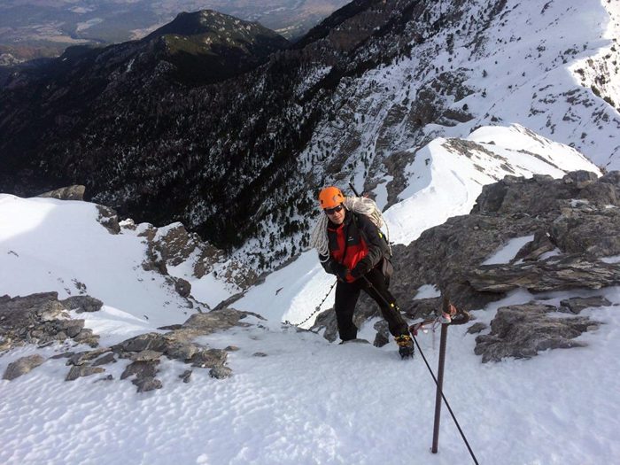 Τα μέλη της Ορειβατικής Ομάδας που επιχειρούν προσπαθούν να προσεγγίσουν τον βοσκό ώστε να τον οδηγήσουν σε ασφαλές περιβάλλον.