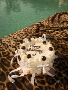 Η Ιωάννα Τούνη που έχει ήδη μοιραστεί υλικό από το ταξίδι της έκανε μια ακόμα ανάρτηση στον προσωπικό της λογαριασμό στο Instagram,  δημοσιεύοντας νέα στιγμιότυπα. Σε αυτά, ποζάρει σε μια πισίνα, φορώντας ένα λευκό μπικίνι και έχοντας μπροστά της μια τούρτα γενεθλίων.