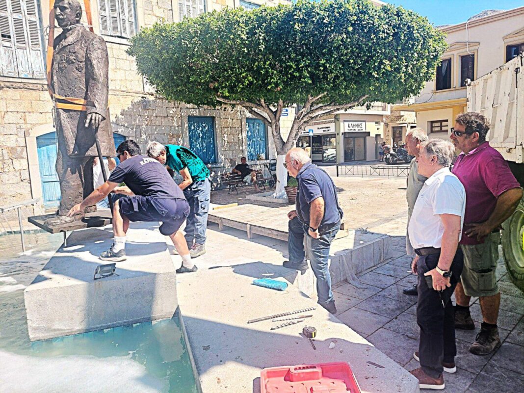 Η τοποθέτηση του ανδριάντα πραγματοποιήθηκε παρουσία του Δημάρχου Καλυμνίων Γιάννη Μαστροκούκου και του δημιουργού του έργου, ο οποίος προσέφερε την καλλιτεχνική του εργασία αφιλοκερδώς. Το κόστος καλύφθηκε από τον Δήμο και με την πολύτιμη συνεισφορά του επιχειρηματία Κωστή Πενταφράγκα, τον οποίο ο Δήμος ευχαριστεί θερμά για τη συνεχή του στήριξη.