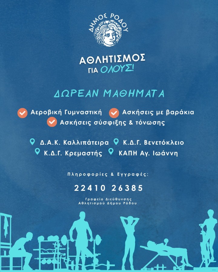 «Ο Δήμος Ρόδου, μέσα από τη Διεύθυνση Αθλητισμού, συνεχίζει δυναμικά την προώθηση του κοινωνικού ρόλου του αθλητισμού και δίνει τη δυνατότητα σε όλους τους δημότες να συμμετάσχουν σε προγράμματα άθλησης, ψυχαγωγίας και ευεξίας.