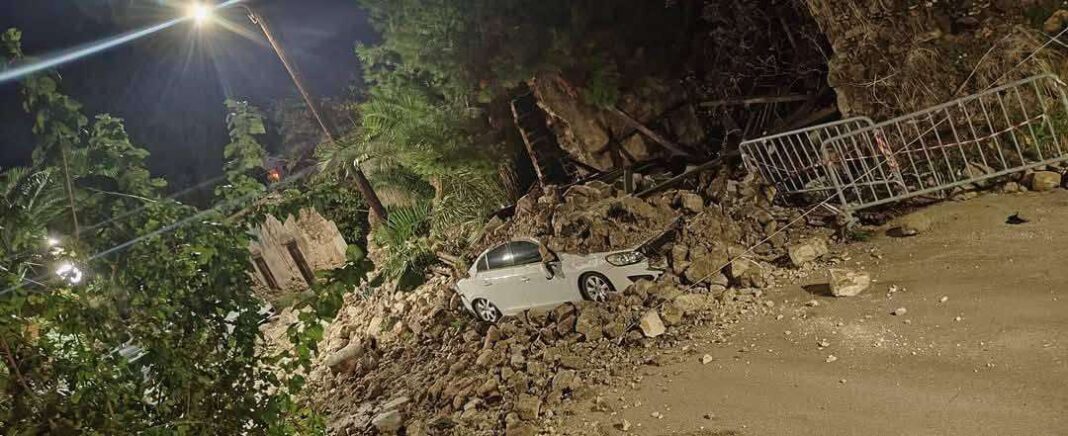 Σοβαρό περιστατικό σημειώθηκε στην Ιαλυσό, κοντά στο Oceanis Park, όταν ένα ετοιμόρροπο σπίτι κατέρρευσε, προκαλώντας σημαντικές ζημιές και κλείνοντας τον δρόμο Σωτήρος. Όπως φαίνεται στη φωτογραφία, τα συντρίμμια καταπλάκωσαν ένα αυτοκίνητο που βρισκόταν σταθμευμένο στο σημείο.