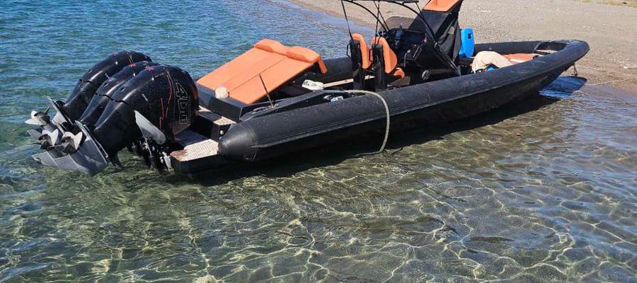Παράλληλα, στελέχη της Λιμενικής Αρχής της Λίνδου μετέβησαν στο σημείο, όπου εντόπισαν το Τ/Χ σκάφος προσαραγμένο, κενό επιβαινόντων. Πρόκειται για μαύρο ταχύπλοο σκάφος με πολυεστερική γάστρα, μήκους περίπου έντεκα (11) μέτρων με τρεις εξωλέμβιες μηχανές ιπποδύναμης 400 HP η κάθε μία (σύνολο 1.200 HP). Εν συνεχεία, κατόπιν ερευνών στην ευρύτερη χερσαία περιοχή εντόπισαν τους ανωτέρω αλλοδαπούς, οι οποίοι μεταφέρθηκαν στο Κ.Λ. Ρόδου.