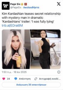 Παρά το γεγονός ότι τον Αύγουστο του 2024, η Κιμ Καρντάσιαν έλεγε σε συνέντευξή της στον Τζίμι Φάλον ότι «δεν ψάχνει για ραντεβού αυτή την περίοδο», φαίνεται πως τα πράγματα αλλάζουν. Η τελευταία δημόσια σχέση της σταρ ήταν με τον Πιτ Ντέιβιντσον, με τον οποίο έβγαινε από το φθινόπωρο του 2021 έως το καλοκαίρι του 2022.
