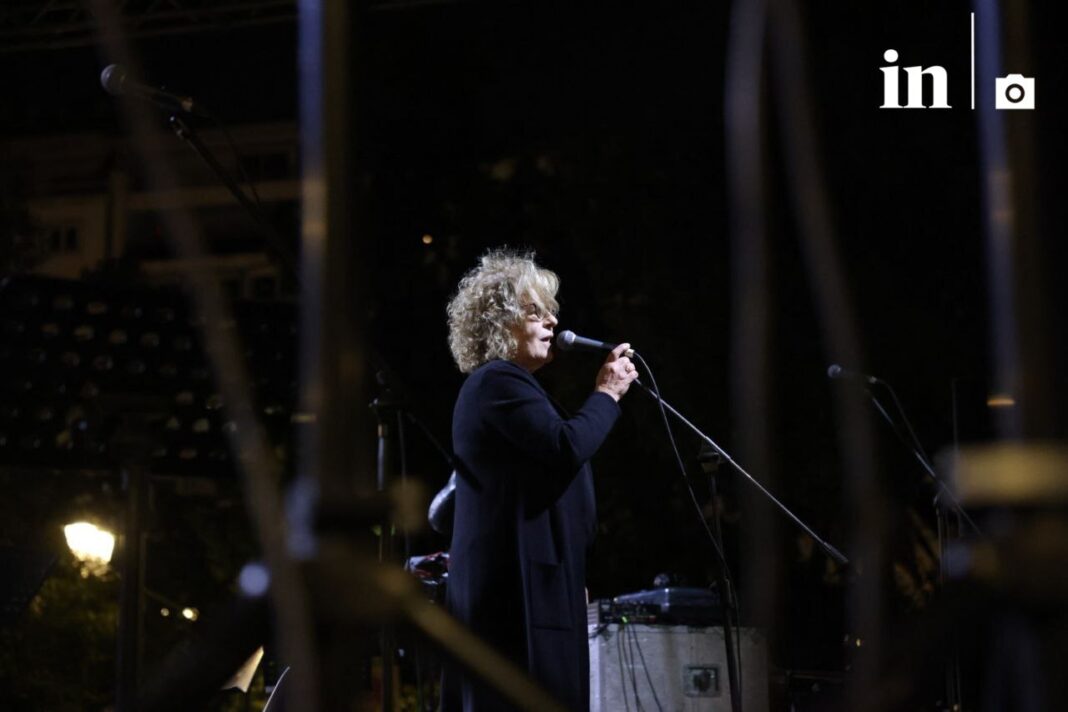 Η ίδια σχολίασε τις προηγούμενες ομιλίες και τα τραγούδια που ακούστηκαν για τα δυστύχημα των Τεμπών (που έχει μείνει στην σύγχρονη πολιτική ιστορία ως το «Έγκλημα των Τεμπών»), λέγοντας «Τι να πω και εγώ μετά από αυτά που είπαν οι καλλιτέχνες μας, καλά που είναι και εκείνοι, καλά που είναι και οι στιχουργοί που γράφουν αυτά που αισθανόμαστε».