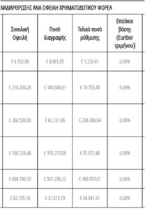 Η επιχείρηση είχε τραπεζικές οφειλές ύψους 1.413.016,50€, εκ των οποίων διαγράφηκε ποσό 851.424,92€ (~60%), μειώνοντας το τελικό ποσό αποπληρωμής σε 561.591,58€. Η μεγαλύτερη διαγραφή επιτεύχθηκε σε κύρια δανειακή οφειλή, η οποία μειώθηκε από 668.190,10€ σε 166.953,87€, διαγράφοντας συνολικά 501.236,23€, δηλαδή το 100% των τόκων και σημαντικό μέρος του κεφαλαίου.