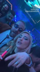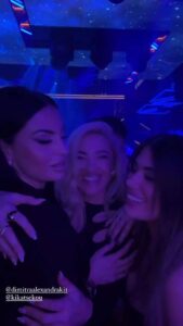 Έκλεισαν τη βραδιά τους επιλέγοντας να διασκεδάσουν υπό τους ήχους ελληνικής μουσικής, ενώ εντύπωση προκαλεί το σχετικό story της γνωστής influencer, στα οποίo φαίνεται να τραγουδά: «Δεν υπάρχουν αντίο στον δρόμο μας, μόνο λίγες στιγμές χωρισμού».