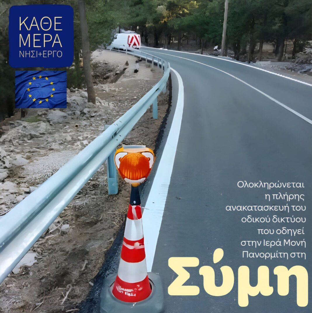Ολοκληρώνεται η πλήρης ανακατασκευή του οδικού δικτύου που οδηγεί στην Ιερά Μονή Πανορμίτη Σύμης, σύμφωνα με την ανάρτηση του Περιφερειάρχη Νοτίου Αιγαίου, Γιώργου Χατζημάρκου.