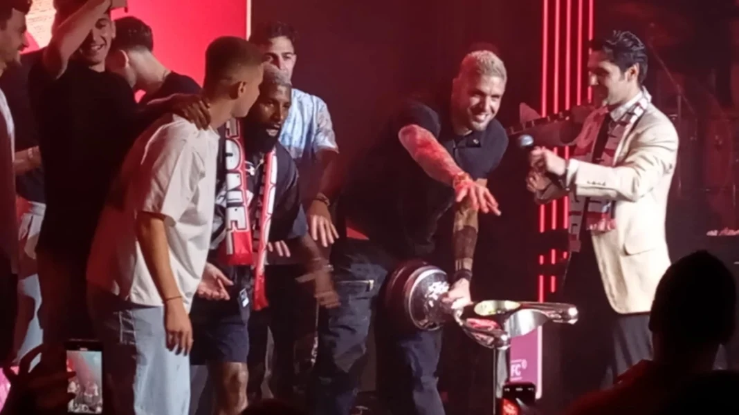 Λίγο πριν τη 1 τα ξημερώματα αναχώρησε η ερυθρόλευκη αποστολή από το ΟΑΚΑ και μετά τη 1 έφτασε στον Ρέντη. Αρκετή ώρα μετά τις 2 οι παίκτες των Πειραιωτών έφτασαν στο συγκεκριμένο μαγαζί με το τρόπαιο στα χέρια.