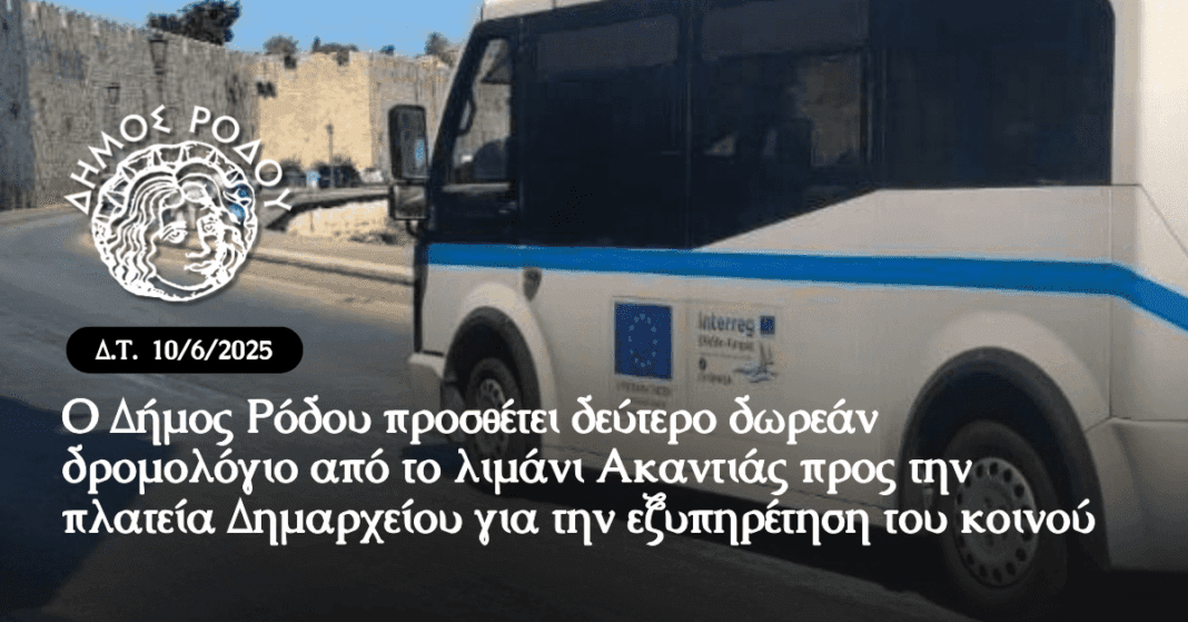 Ο Δήμος Ρόδου προσθέτει δεύτερο δωρεάν δρομολόγιο από το λιμάνι Ακαντιάς προς την πλατεία Δημαρχείου για την εξυπηρέτηση του κοινού
