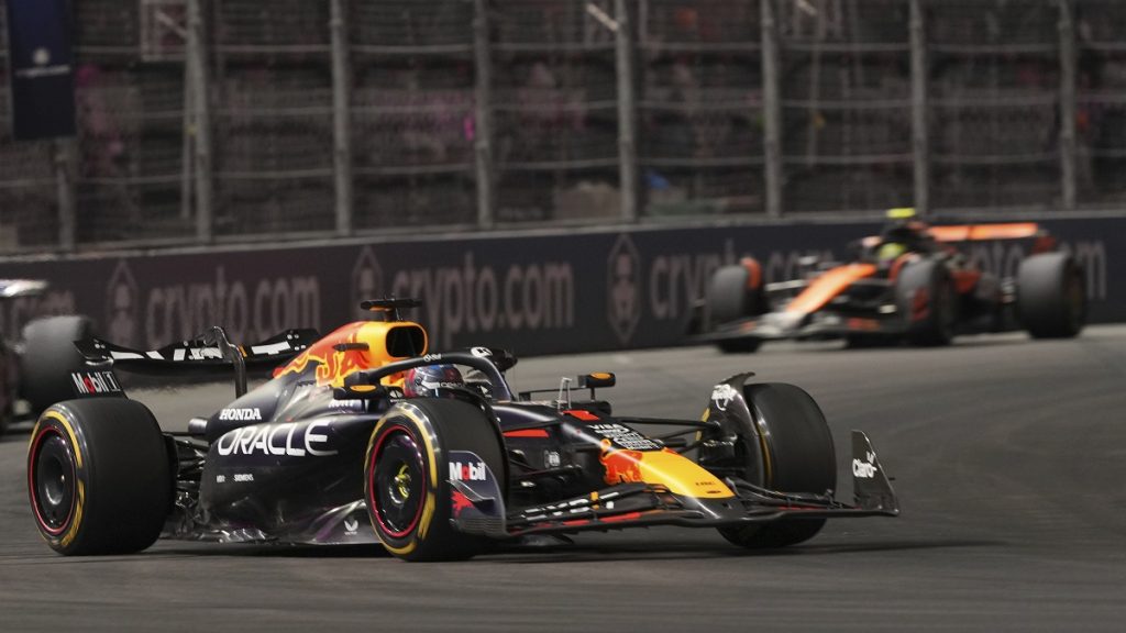 Με τον Λάντο Νόρις και την McLaren να μην βρίσκονται καν στο κάδρο της διεκδίκησης, για ακόμα μία φορά, ο Μαξ Φερστάπεν έκανε… παρέλαση στο Λας Βέγκας. Ο 27χρονος χρειάστηκε να τερματίσει απλώς μπροστά από τον Βρετανό, ώστε να κατακτήσει και μαθηματικά τον τίτλο, δύο Grand Prix πριν το φινάλε. Έτσι κι έγινε, μιας και δεν αρκέστηκε απλώς στο γεγονός ότι εκκίνησε μπροστά από τον αντίπαλό του, αλλά κατάφερε κιόλας να του ξεφύγει.