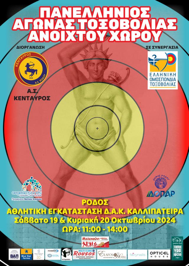 Στο τελικό στάδιο έχουν μπει οι διαδικασίες προετοιμασίας του Πανελλήνιου Αγώνα Τοξοβολίας του Α.Σ. ΚΕΝΤΑΥΡΟΣ και της Ελληνικής Ομοσπονδίας Τοξοβολίας 19 & 20 του μήνα στο ΔΑΚ ΚΑΡΑΚΟΝΕΡΟ με συνδιοργανωτές την Περιφέρεια Νοτίου Αιγαίου και τον Δήμο Ρόδου ΔΟΠΑΡ.