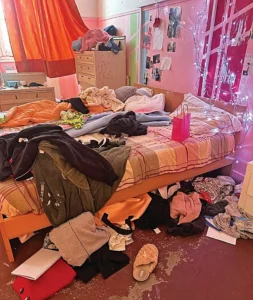 Όπως φαίνεται στις φωτογραφίες, τα υπνοδωμάτια είναι γεμάτα σκουπίδια και σκορπισμένα ρούχα, δείχνοντας ότι η καθαριότητα έχει αμεληθεί για πολλές μέρες, αφήνοντας τα κορίτσια αβοήθητα. Οι τοίχοι είναι φθαρμένοι και λερωμένοι για μήνες, ενώ οι τουαλέτες είναι γεμάτες ακαθαρσίες, με τους κάδους να ξεχειλίζουν από χρησιμοποιημένα χαρτιά. Στο μπάνιο, λείπουν ντουζιέρες και ακόμα και οι βρύσες από τους νιπτήρες είναι χαλασμένες.