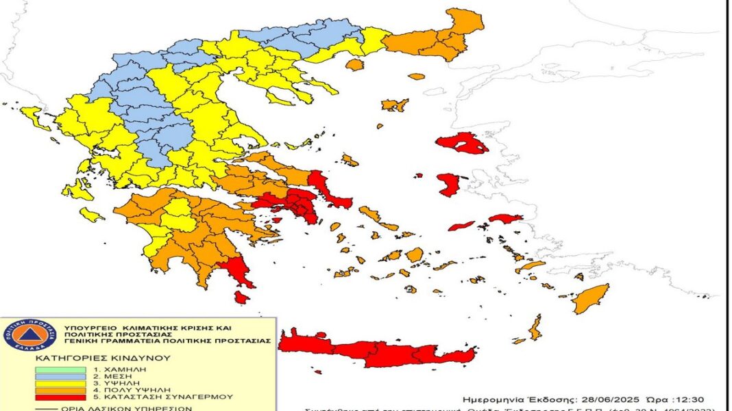 Σύμφωνα με τον Χάρτη Πρόβλεψης Κινδύνου Πυρκαγιάς της Γενικής Γραμματείας Πολιτικής Προστασίας του υπουργείου Κλιματικής Κρίσης και Πολιτικής Προστασίας, τα νησιά αυτά κατατάσσονται στην κατηγορία κινδύνου 4 (πολύ υψηλή), λόγω των ισχυρών ανέμων που θα επικρατήσουν στην περιοχή.