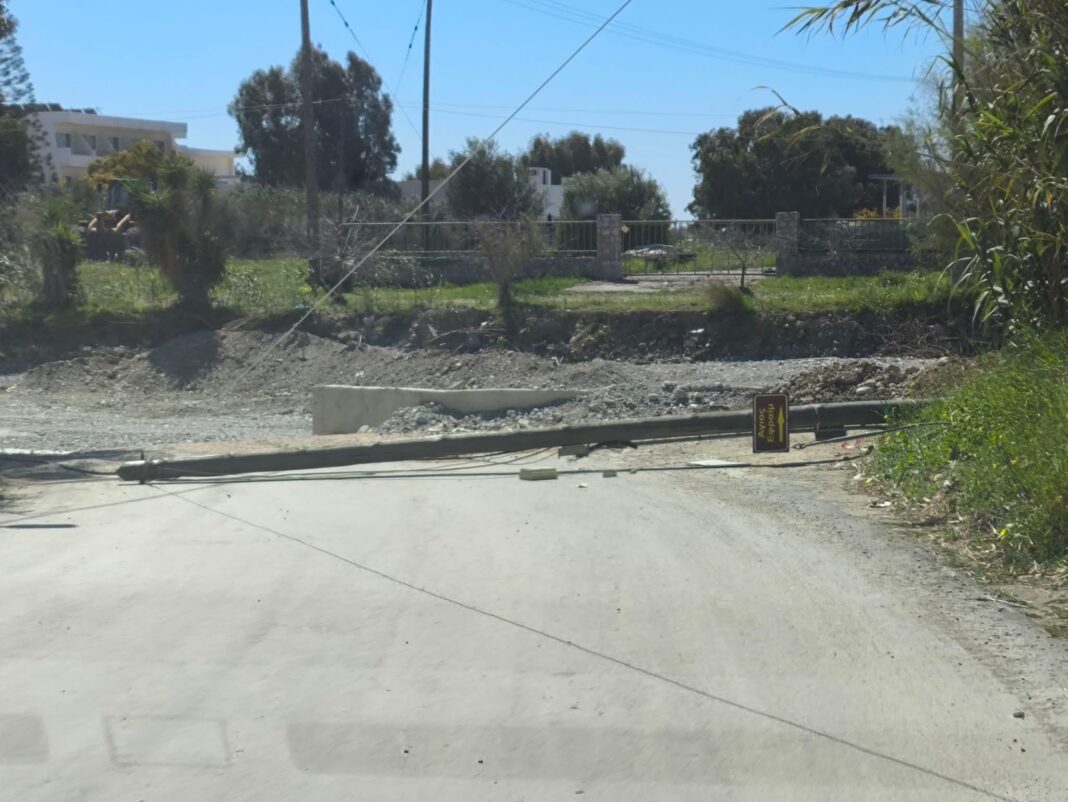 Προσοχή στους οδηγούς – Πτώση κολώνας της ΔΕΗ στην ιρλανδική διάβαση Αφάντου