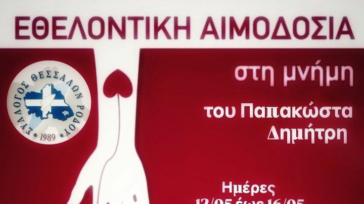 Η εθελοντική αιμοδοσία είναι προσφορά ΖΩΗΣ και ο σύλλογος Θεσσαλών Ρόδου καλεί όλους τους φίλους και τα μέλη του, σε εθελοντική αιμοδοσία στη μνήμη του επί σειρά ετών ενεργού μέλους μας Δημήτρη Παπακώστα.