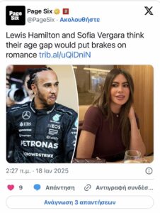 Η Σοφία Βεργκάρα στα 52 της βρίσκεται στο δεύτερό της διαζύγιο, αυτή τη φορά με τον Τζο Μανγκανιέλο, μετά από εννιά χρόνια γάμου. Πριν από αυτόν, ήταν σε μια μακροχρόνια σχέση με τον Νικ Λομπ. Επιπλέον, διανύει μια πολύ καλή πορεία στην υποκριτική, με τις τελευταίες της δουλειές, Modern Family και Griselda να σημειώνουν τεράστια επιτυχία. Από την άλλη, ο Λιούς Χάμιλτον ήταν ζευγάρι με τη Νικόλ Σέρζινγκερ από το 2007 έως το 2015 κι έκτοτε, δεν βρέθηκε σε άλλη σοβαρή σχέση. Πριν καιρό, είχε πυροδοτήσει φήμες για ένα πιθανό ειδύλλιο με τη Σακίρα, μετά τον χωρισμό της από τον Ζεράρ Πικέ.