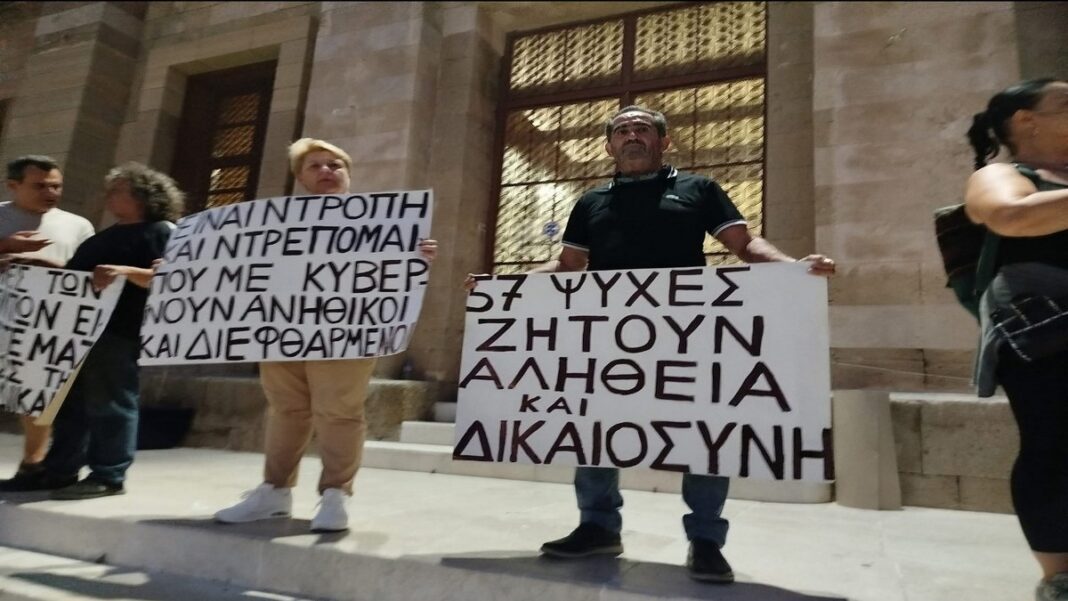 Οι συγκεντρωμένοι ζήτησαν να αποδοθεί δικαιοσύνη για τα θύματα του τραγικού δυστυχήματος.