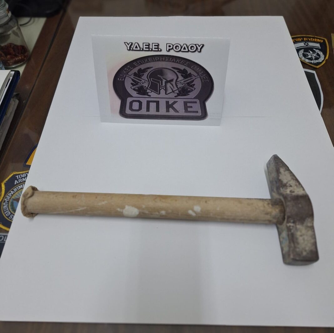 Στη Ρόδο, την 4η Μαρτίου 2025, ένας 52χρονος αλλοδαπός συνελήφθη από αστυνομικούς του Αστυνομικού Τμήματος Ρόδου, έπειτα από καταγγελία για ενδοοικογενειακή βία. Κατά τη διάρκεια της έρευνας, οι αρχές εντόπισαν και κατέσχεσαν ένα σφυρί, το οποίο ο συλληφθείς χρησιμοποίησε ως μέσο απειλής.