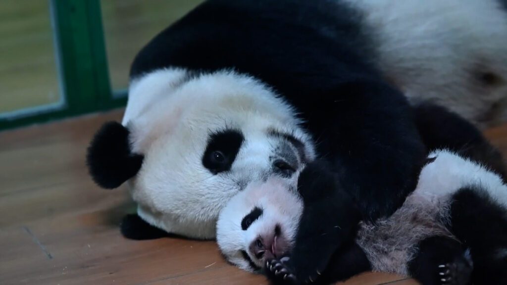 Η Μενγκμένγκ , η μεγαλύτερη από τα μοναδικά τρίδυμα πάντα στον κόσμο, γέννησε ένα θηλυκό μικρό στις 18 Ιουνίου μετά από εγκυμοσύνη 128 ημερών στο πάρκο Guangzhou Chimelong.