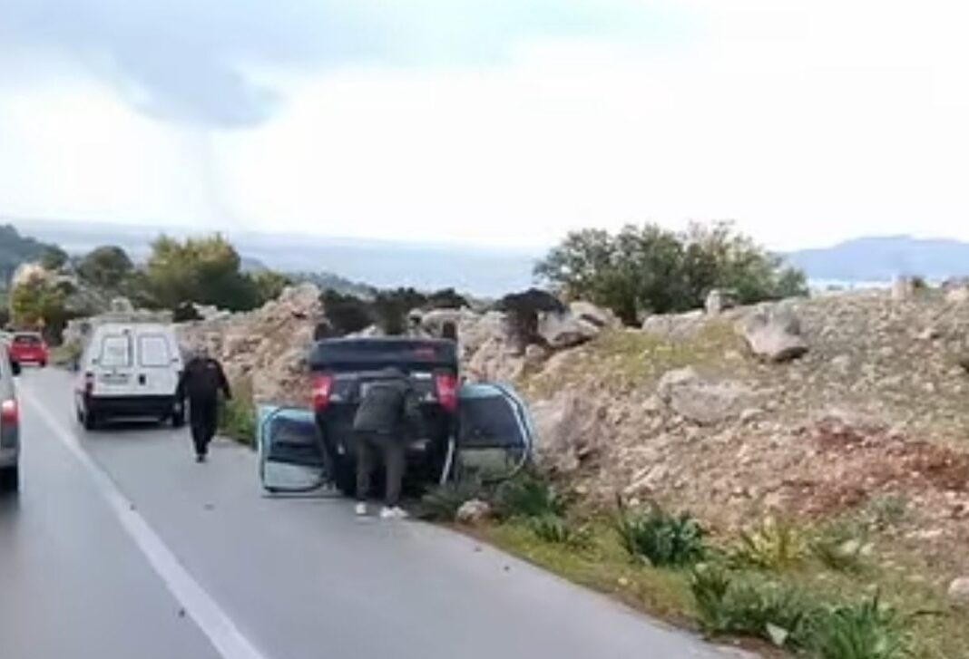 Σύμφωνα με τις πρώτες πληροφορίες, ο οδηγός έχασε τον έλεγχο του οχήματος – κάτω από αδιευκρίνιστες ακόμη συνθήκες – με αποτέλεσμα το αυτοκίνητο να ανατραπεί και να προσγειωθεί ανάποδα στην άκρη του οδοστρώματος, δίπλα σε βραχώδη πρανή.