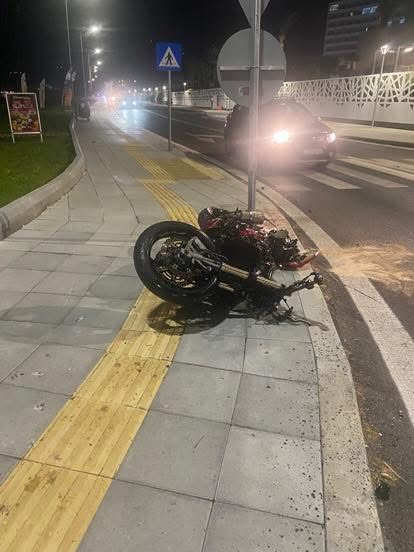 Μηχανή μεγάλου κυβισμού, στην οποία επέβαιναν δύο άτομα, κινούνταν με υψηλή ταχύτητα όταν, αργά το βράδυ, πέρασε με ορμή πάνω από τον κόμβο. Αυτό είχε ως αποτέλεσμα ο οδηγός να χάσει τον έλεγχο και οι δύο επιβαίνοντες να εκτοξευθούν από το όχημα και να προσγειωθούν στο οδόστρωμα.