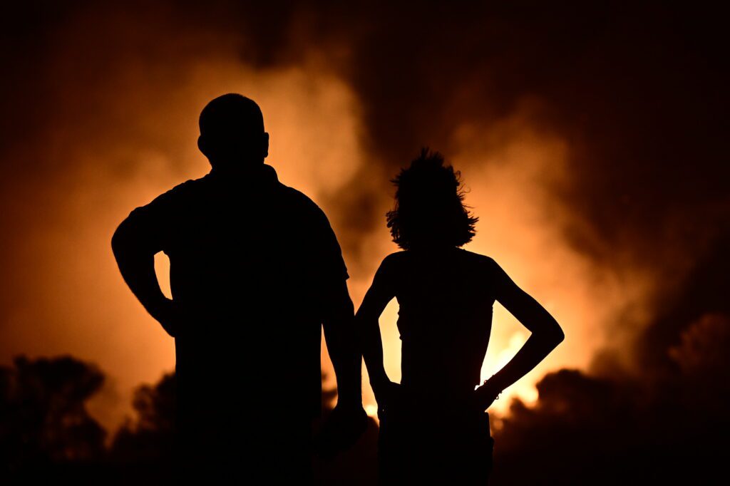 Οι εικόνες με τη φωτιά να καίει μέσα στο σκοτάδι είναι συγκλονιστικές, καθώς οι φλόγες απειλούν σπίτια και περιουσίες.