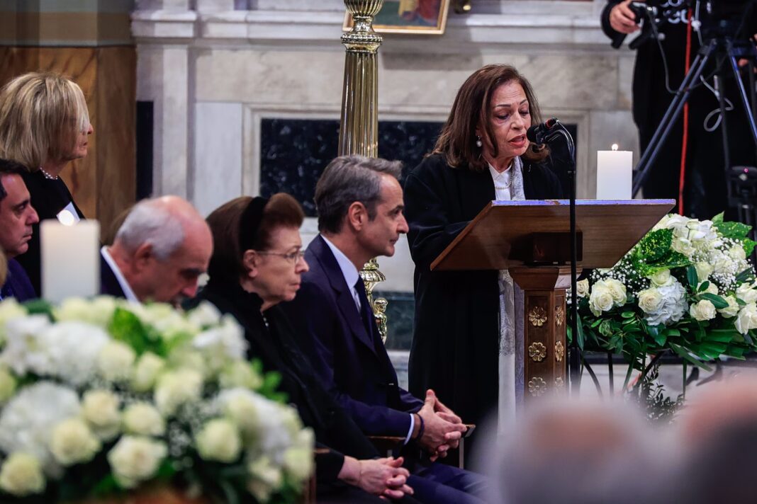 Με λόγια γεμάτα αγάπη και σεβασμό, η Χάρις Αλεξίου εκφώνησε τον επικήδειο λόγο για τη μεγάλη ερμηνεύτρια, συγκινώντας όσους παρευρέθηκαν στην τελετή.