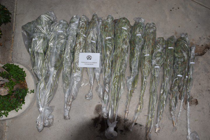 Κατά τη διάρκεια της αστυνομικής επιχείρησης, εκριζώθηκαν συνολικά 15 ανεπτυγμένα δενδρύλλια κάνναβης, ύψους έως 1,8 μέτρων, τα οποία καλλιεργούνταν σε κατάλληλα διαμορφωμένο χώρο μέσα σε δυσπρόσιτη αγροτοδασική περιοχή του νησιού.