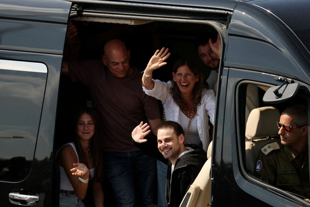 “Καλωσήρθατε στο σπίτι σας”, ανέφερε το υπουργείο Εξωτερικών σε σειρά αναρτήσεων στην πλατφόρμα X, υποδεχόμενο τους Ελκάνα Μπόχμποτ, Ρομ Μπρασλάφσκι, Νιμρόντ Κοέν, Άριελ και Νταβίντ Κούνιο, Εβιατάρ Νταβίντ, Μαξίμ Χερκίν, Εϊτάν Χορν, Σεγκέβ Καλφόν, Μπαρ Κούπερσταϊν, Γιόσεφ Χαΐμ Οχάνα, Αβινατάν Ορ και Ματάν Ζανγκάουκερ. Οι όμηροι αυτοί αφέθηκαν ελεύθεροι έπειτα από 738 ημέρες αιχμαλωσίας.