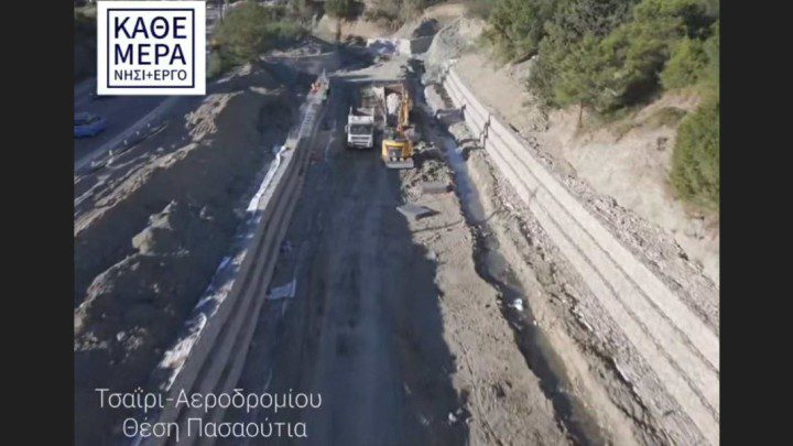 Ιδιαίτερη έμφαση έδωσε στις εργασίες που πραγματοποιούνται στην Επαρχιακή Οδό Τσαΐρι–Αεροδρομίου, εκεί όπου εντοπίστηκε η πιο κρίσιμη ζημιά της κακοκαιρίας. Οι μεγάλες υποσκαφές που προκλήθηκαν από τη θεομηνία έθεσαν σε άμεσο κίνδυνο το οδόστρωμα και θα μπορούσαν να οδηγήσουν ακόμη και σε κλείσιμο του δρόμου, με σοβαρές επιπτώσεις στην κυκλοφορία του νησιού.