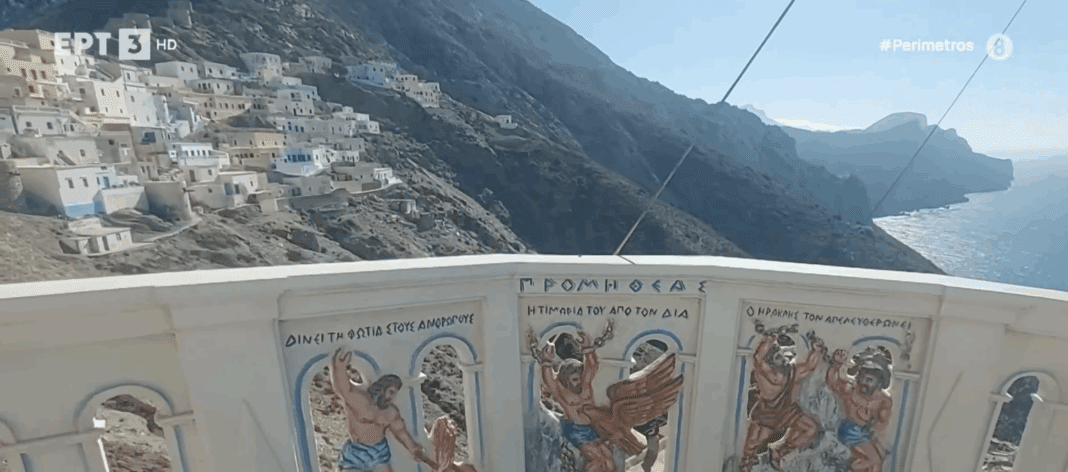 Ο κ. Γιάννης Χατζηβασίλης, είναι ένας λαογράφος από την Όλυμπο Καρπάθου που ζωγραφίζει εικόνες αρχαίων μύθων έξω από σχολεία που κινδυνεύουν να κλείσουν.