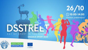 Στο πλαίσιο του ευρωπαϊκού έργου DSStreet – Day of Sport in the Street (ERASMUS-SPORT-2024), την Κυριακή 26 Οκτωβρίου, από τις 10:00 το πρωί έως τις 14:00, στην Πλατεία Δημαρχείου Ρόδου, θα πραγματοποιηθεί ένα μοναδικό street event με αθλητικά εργαστήρια και δράσεις ελεύθερης συμμετοχής για όλους!