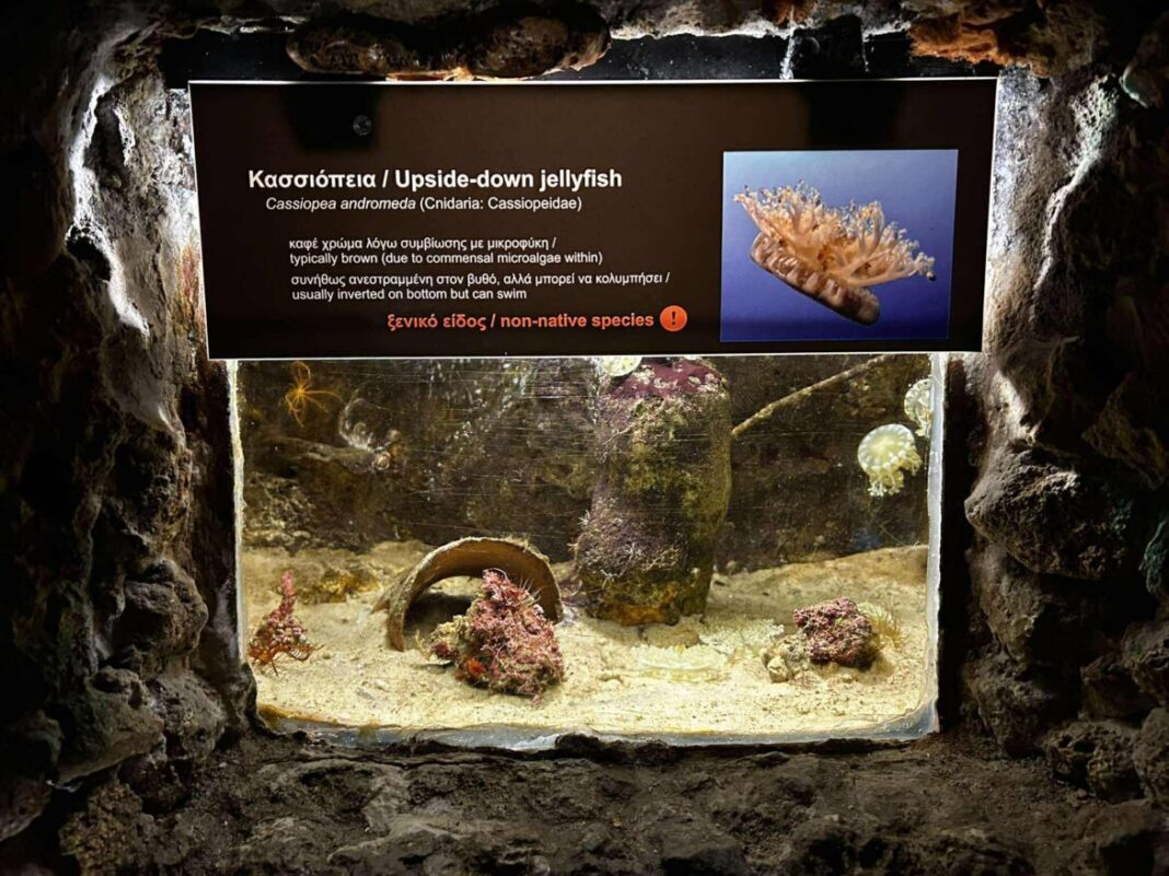 Ένα μικρό αλλά εντυπωσιακό νέο έκθεμα σας περιμένει στο Ενυδρείο Ρόδου! Γνωρίστε τη μαγευτική μέδουσα Cassiopea andromeda, γνωστή και ως «ανεστραμμένη μέδουσα» — ένα ξενικό είδος που ταξίδεψε από την Ερυθρά Θάλασσα μέχρι τα δικά μας νερά.
