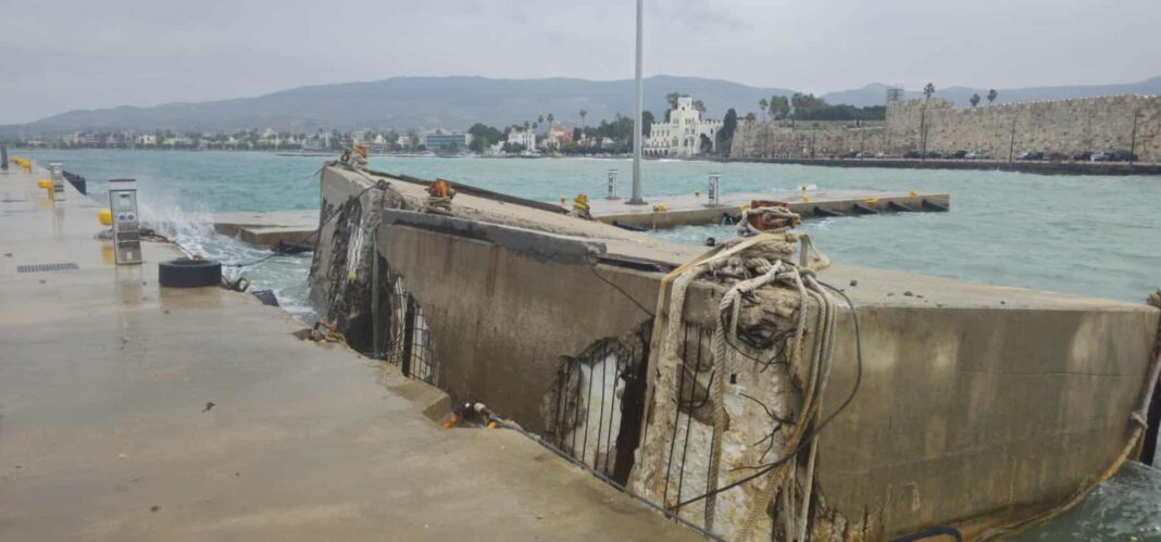Κως: Σοβαρές ζημιές από την κακοκαιρία στο λιμάνι της Κεφάλου