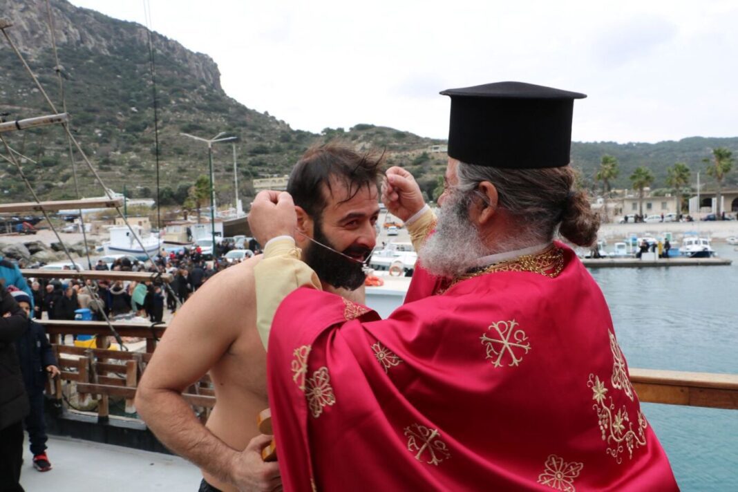 Πλήθος προσκυνητών κατέκλυσε σήμερα το πρωί το λιμάνι της Κεφάλου, συμμετέχοντας στον λαμπρό εορτασμό των Αγίων Θεοφανείων.
