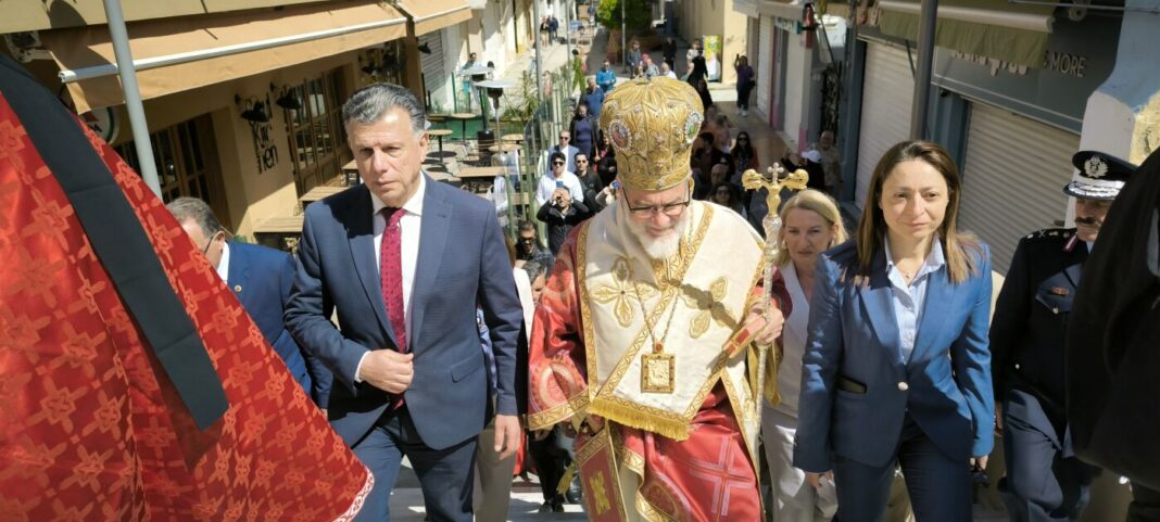 Ξεκινώντας οπό τον Ιερό Μητροπολιτικό Παρεκκλήσιο του Ευαγγελισμού όπου σύμφωνα με το εκκλησιαστικό τυπικό γίνεται το ντύσιμο του Δεσπότη στο μέσο του ναού και αμέσως μετά με την συνοδεία της Δημοτικής Φιλαρμονικής με τον μαέστρο Νίκο Γκαναβουρα έγινε η λιτάνευση της εικόνας της Ανάστασης, προεξάρχοντος του Μητροπολίτου μας κ.κ. Ναθαναήλ.
