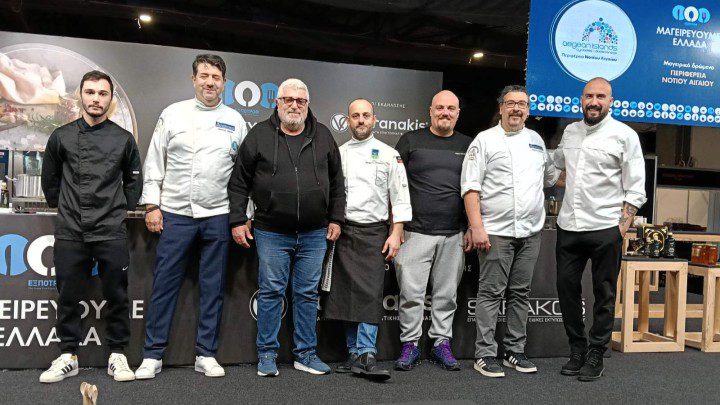 «Το γαστρονομικό δρώμενο της περιφέρειάς μας με τη συνεργασία των σεφ της Λέσχης Αρχιμαγείρων Κυκλάδων και Δωδεκανήσου στο πλαίσιο της 12ης EXPOTROF έγινε λίγο πριν το κλείσιμο της χθεσινής ημέρας της έκθεσης.