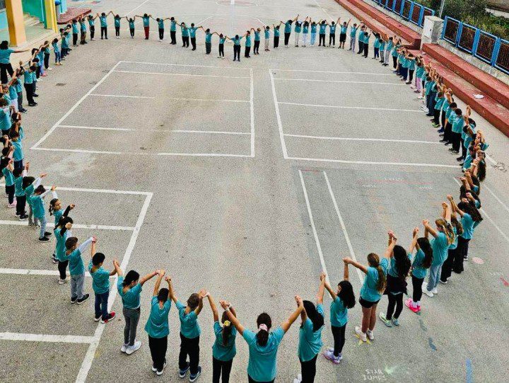 Τα παιδιά του Δημοτικού Σχολείου Σγούρου, με την καθοδήγηση των εκπαιδευτικών τους και τη στήριξη του Συλλόγου Γονέων και Κηδεμόνων, δημιούργησαν μια συγκινητική εικόνα αλληλεγγύης και ελπίδας, σχηματίζοντας μια μεγάλη καρδιά.