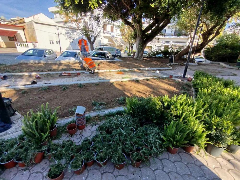 Ήδη έχει πραγματοποιηθεί εκτεταμένος καθαρισμός παρτεριών στην περιοχή των Αγίων Αποστόλων, ενώ στη Λεωφόρο Δημοκρατίας φυτεύονται μυρτιές, εκτός από το τμήμα μπροστά από το Πανεπιστήμιο Αιγαίου, όπου θα συμπληρωθούν οι υπάρχοντες ιβίσκοι. Στο σημείο αυτό αφαιρέθηκαν παλιοί, ασθενικοί και διασκορπισμένοι ιβίσκοι, ώστε να αντικατασταθούν με υγιή και ομοιόμορφα φυτά.