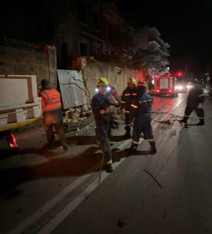 Πτώση τοιχίου σημειώθηκε νωρίτερα στην αρχή της οδού Παπαλουκά, προκαλώντας άμεση κινητοποίηση των αρμόδιων υπηρεσιών. Στο σημείο έσπευσαν συνεργεία του Δήμου Ρόδου, της Πολιτικής Προστασίας, της Ελληνικής Αστυνομίας και της Πυροσβεστικής Υπηρεσίας.