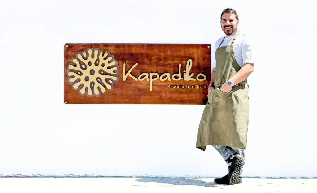 Γεννημένος στο Clearwater της Φλόριντα (1986) και μεγαλωμένος από το 1993 στην Κάλυμνο, ο Μιχάλης Μάρθας κουβαλά μια διαδρομή σε απαιτητικές κουζίνες της Ευρώπης: The Fat Duck και Waterside Inn (Bray, Αγγλία), Pure C (Ολλανδία), Daniel Berlin Krog (Σουηδία), αλλά και σημαντικά πόστα στην Ελλάδα (μεταξύ άλλων Ρόδος, Κως, Τήνος). Επιστρέφοντας πριν από ένα χρόνο στον τόπο του, άνοιξε το «Καπάδικο», ένα εστιατόριο που μεταφράζει τις γεύσεις της Καλύμνου με τεχνική, ακρίβεια και βαθιά σχέση με την εποχικότητα και τη θάλασσα.