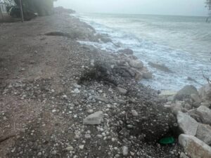 Ιδιαίτερα επικίνδυνη είναι η κατάσταση που επικρατεί στο παραλιακό μέτωπο της Σορωνής, εξαιτίας της έντονης θαλασσοταραχής και των ισχυρών ανέμων που πλήττουν την περιοχή. Τα φαινόμενα έχουν προκαλέσει ήδη πτώσεις δέντρων, ενώ σε αρκετά σημεία ο δρόμος παραμένει κλειστός, καθιστώντας τις μετακινήσεις επισφαλείς.